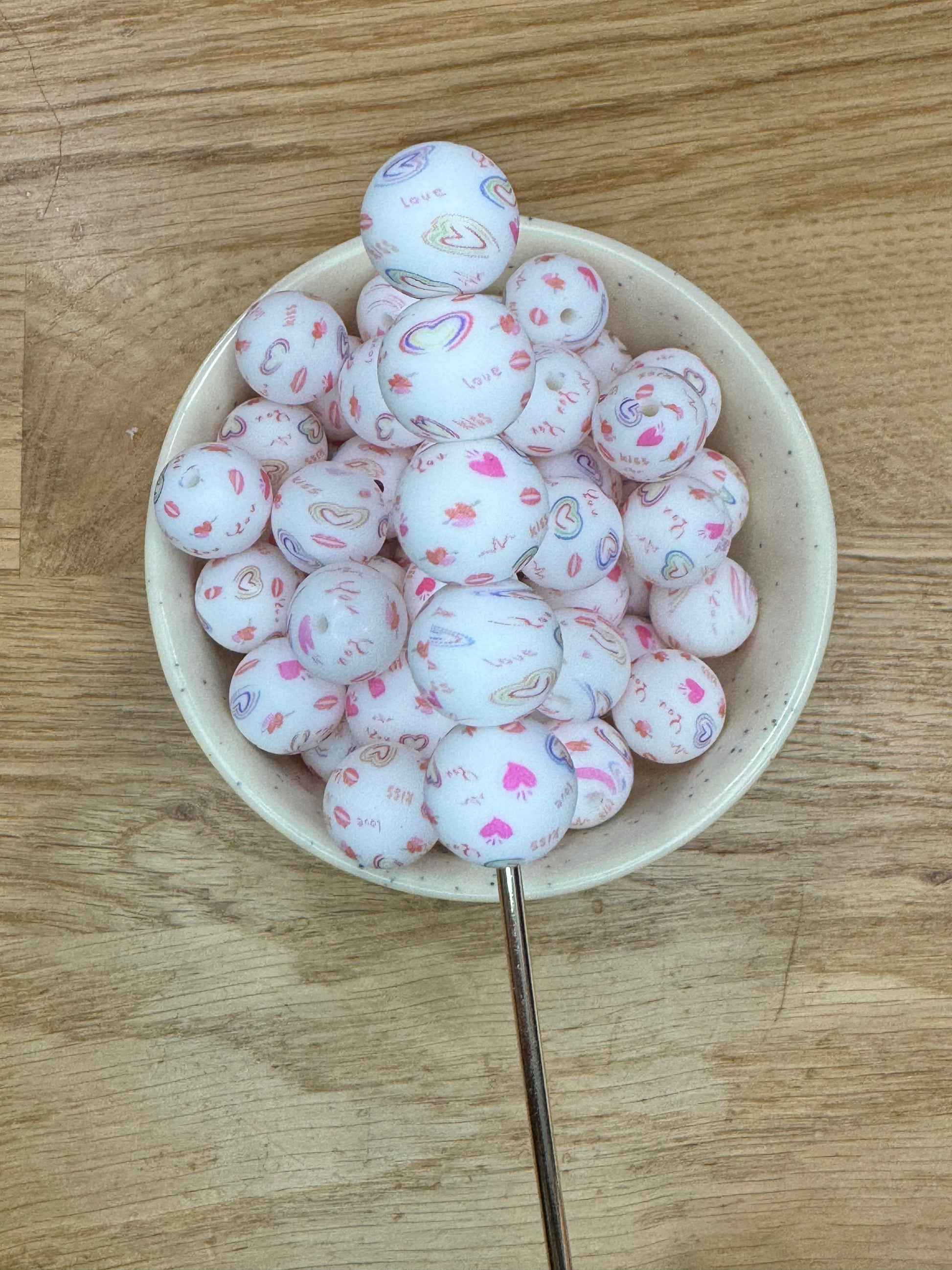15mm Love and Kisses Hearts Silicone Bead