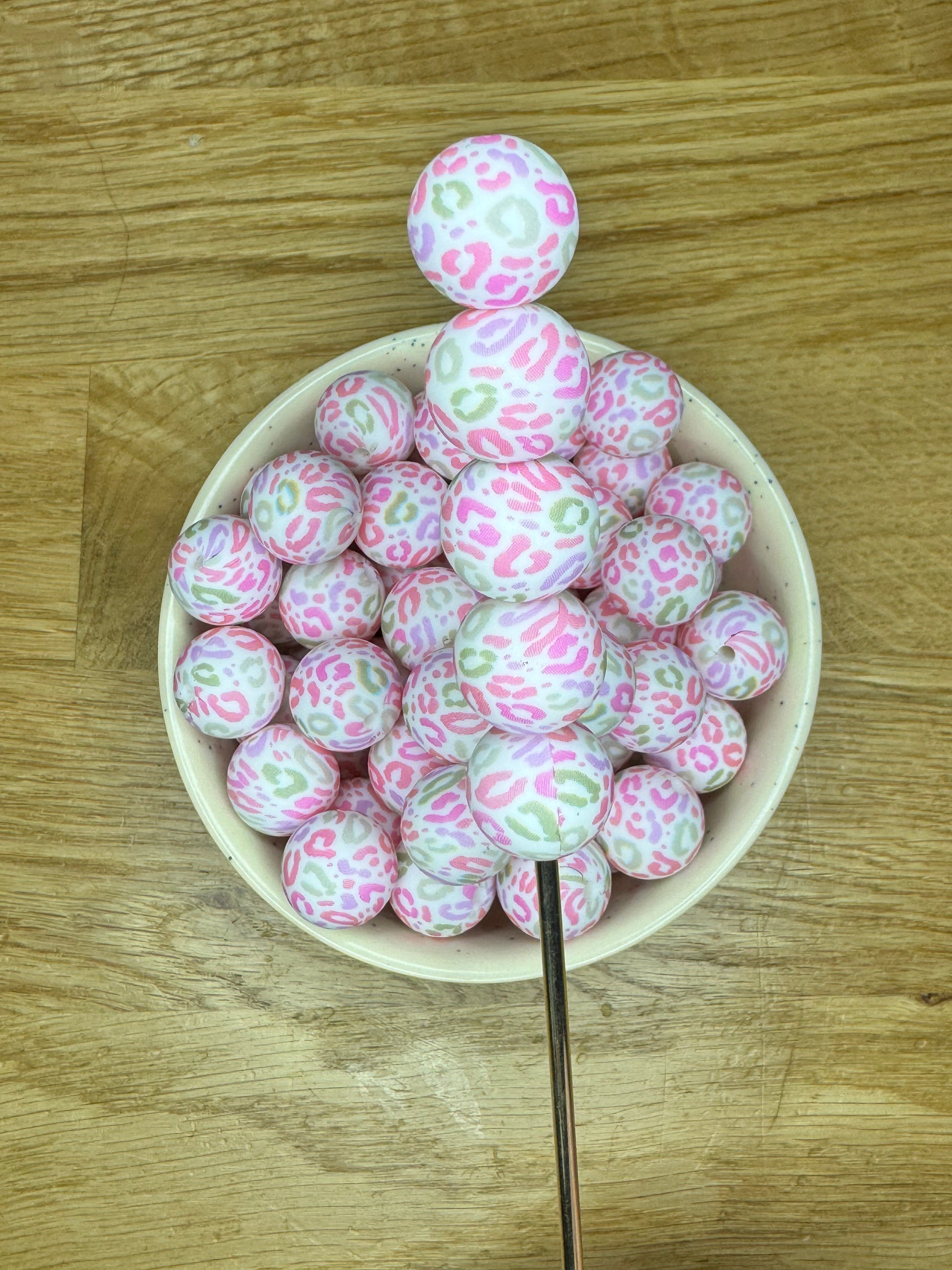 15mm Pink Cheetah Silicone Bead